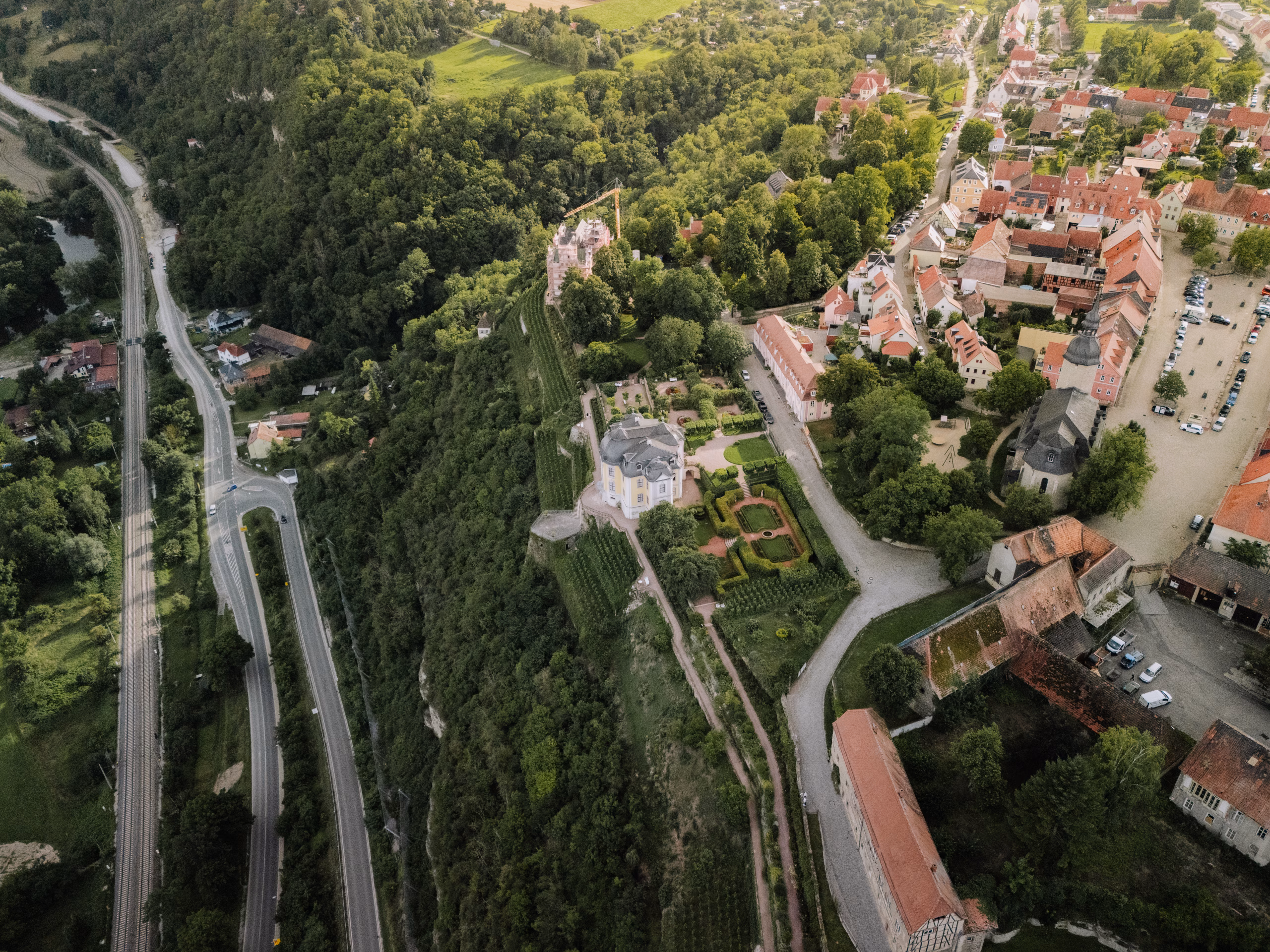 Josephine und Jonas feierten ihre Traumhochzeit an einer der schönsten Hochzeitslocations in Thüringen: den Dornburger Schlössern bei Jena. Hoch über dem Saaletal, mit einem atemberaubenden Blick über die Landschaft, begann ihr besonderer Tag im Rokokoschloss. Die Trauung im kunstvoll verzierten Festsaal war geprägt von einer warmen, persönlichen Atmosphäre – elegant und authentisch zugleich.